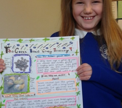 Congratulations to Isabella who wrote a wonderful piece of work on cocoa beans. She created a beautiful piece of work and presented her finished work to Mr Jones who was very impressed. Well Done!
